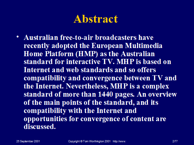 Australian free-to-air broadcasters have recently adopted the European Multimedia Home Platform (HMP) as the Australian standard for interactive TV. MHP is based on Internet and web standards and so offers compatibility and convergence between TV and the Internet. Nevertheless, MHP is a complex standard of more than 1440 pages. An overview of the main points of the standard, and its compatibility with the Internet and opportunities for convergence of content are discussed.