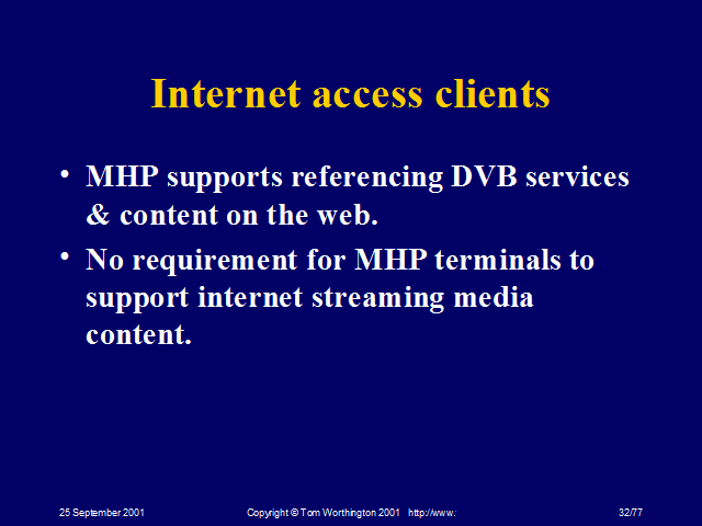 No requirement for MHP terminals to support internet streaming media content.