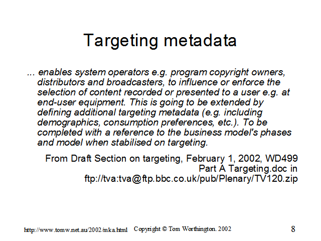 From Draft Section on targeting, February 1, 2002, WD499 Part A Targeting.doc in ftp://tva:tva@ftp.bbc.co.uk/pub/Plenary/TV120.zip