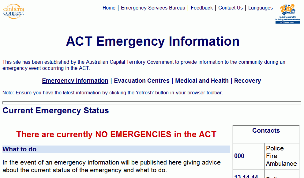 The ACT Emergency Information web site is simple and clear: