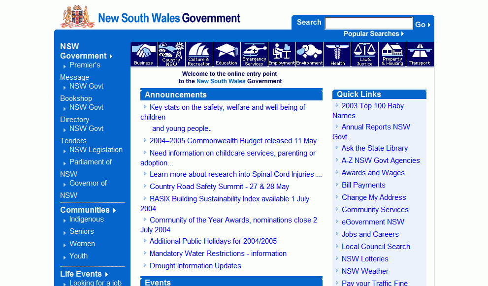 NSW Government Portal, 23 May 2003, URL http://www.nsw.gov.au/