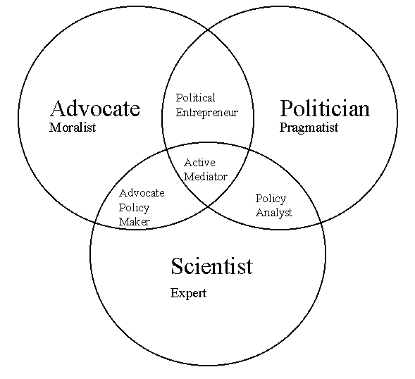 Fontana's definition is useful in that worldview can encompass ideological, theoretical and cultural components. James Throgmorton (1991, 1996 ) emphasises that the roles are not purist and that it is doubtful whether any policy maker or audience occupies any singular category (1996, 43). Throgmorton gives an extensive analysis of rhetoric and strategy adopted by those occupying in varying degrees, scientific, political and advocate roles in a complex dispute about nuclear power policy in Chicago. The dispute centred around Commonwealth Edison Company's plans to extend their nuclear power plant program, significantly raise rates and silence the voice of opposition. Throgmorton's analysis incorporates an investigation of discourses, worldviews and rhetoric demonstrated by social actors to persuade audiences to accept their arguments.